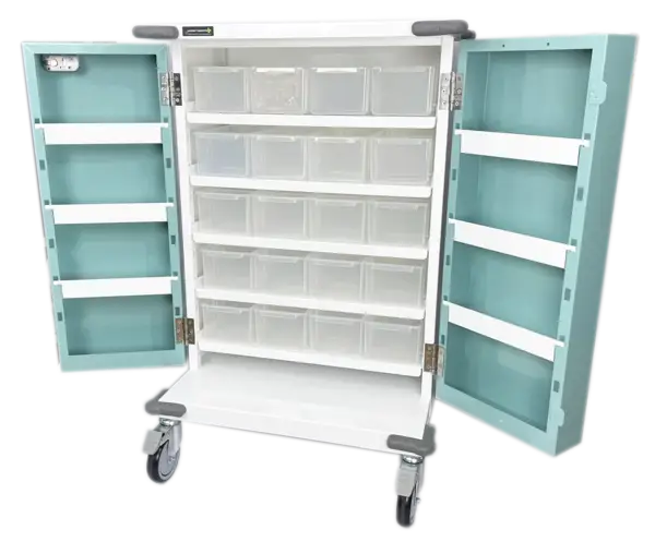 These trolleys are commonplace in care homes. Providing a secure area to store medication for dispensing rounds, our trolleys have been designed to be robust and reliable. Our 25 plus years of experience have allowed us to engineer out the common issues seen with many drugs trolleys on the market today. Our comprehensive range of medicine drugs trolleys will ensure there is a unit to meet your needs.