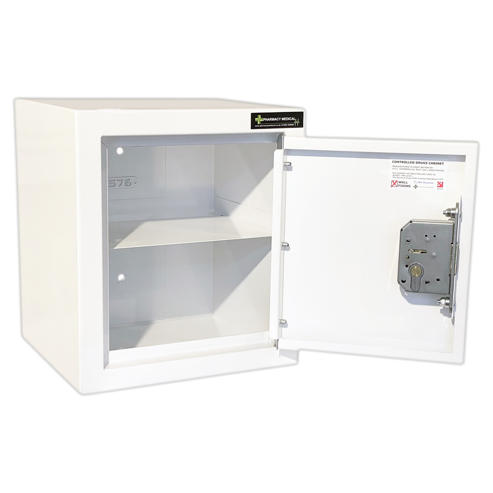 Manufactured in the United Kingdom by Pharmacy Medical, this cabinet is built to the highest standards of safety and compliance. It conforms to BS2881:1989 (Security Level One), the specification for medicine storage in healthcare premises, and fully complies with the Misuse of Drugs (Safe Custody) Regulations 1973.
