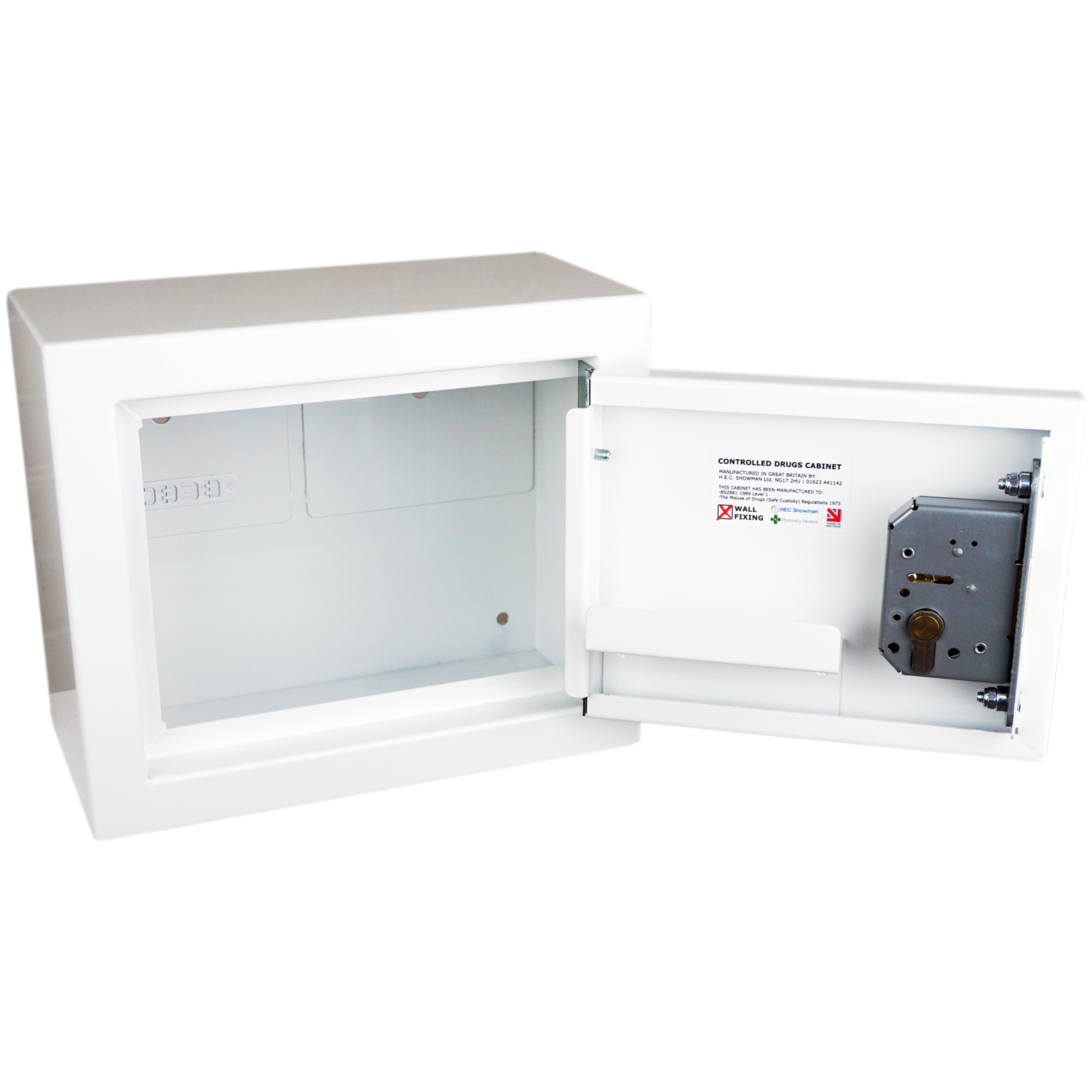 Manufactured in the United Kingdom by Pharmacy Medical, this cabinet is built to the highest standards of safety and compliance. It conforms to BS2881:1989 (Security Level One), the specification for medicine storage in healthcare premises, and fully complies with the Misuse of Drugs (Safe Custody) Regulations 1973.