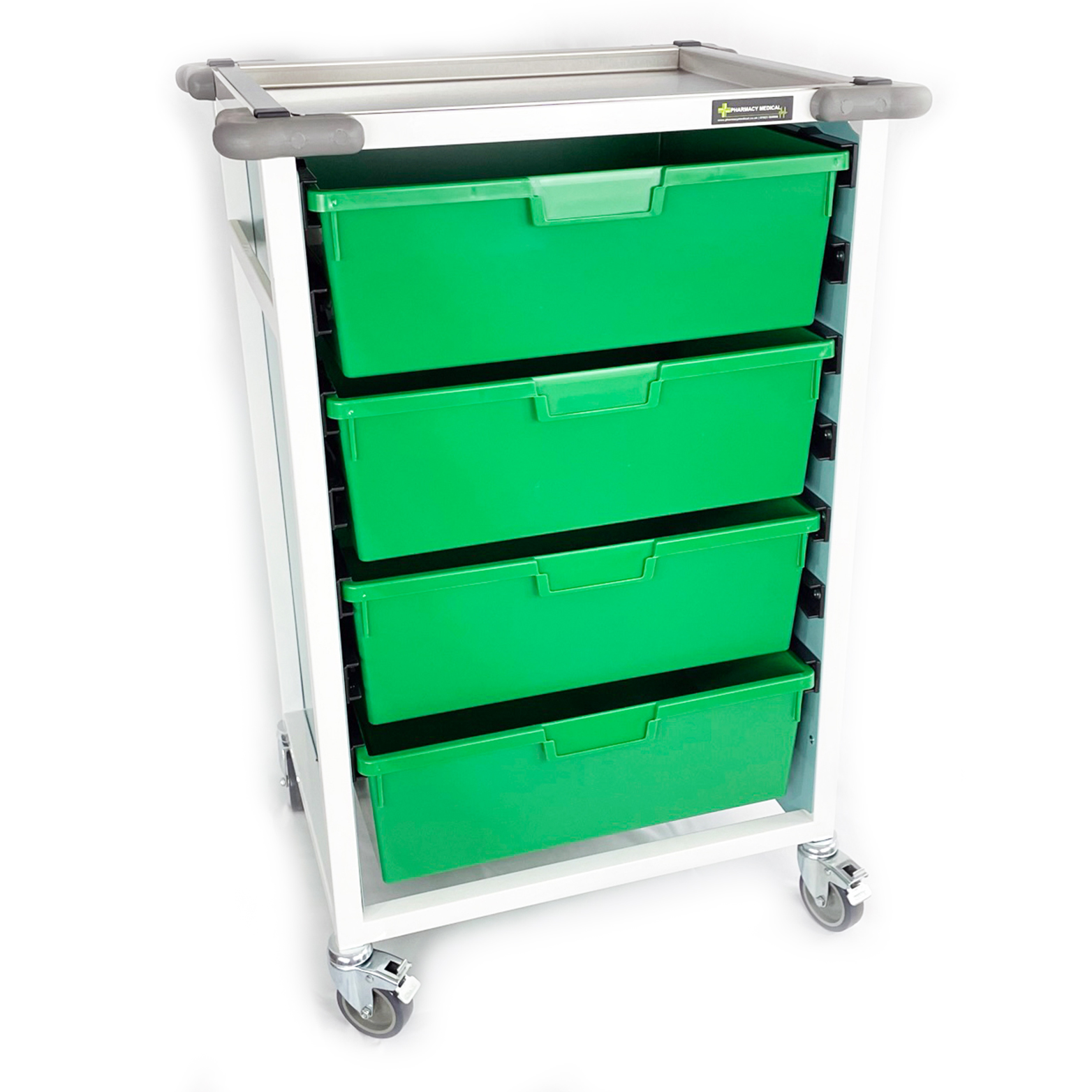 All of these trolleys are manufactured in the UK by Pharmacy Medical. Although we offer a wide range of sizes and configurations, we can offer a bespoke manufacturing service on these items for bulk orders. Please get in touch to discuss your specific requirements.