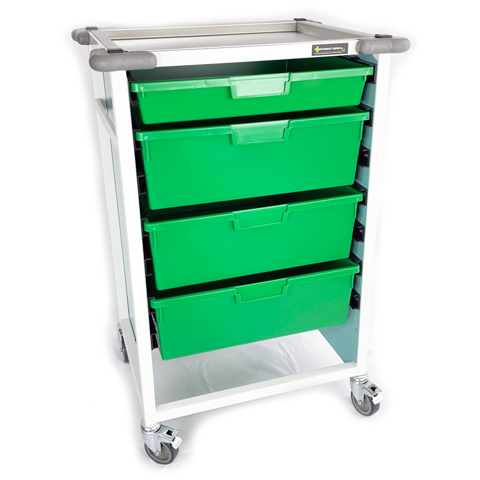 All of these trolleys are manufactured in the UK by Pharmacy Medical. Although we offer a wide range of sizes and configurations, we can offer a bespoke manufacturing service on these items for bulk orders. Please get in touch to discuss your specific requirements.