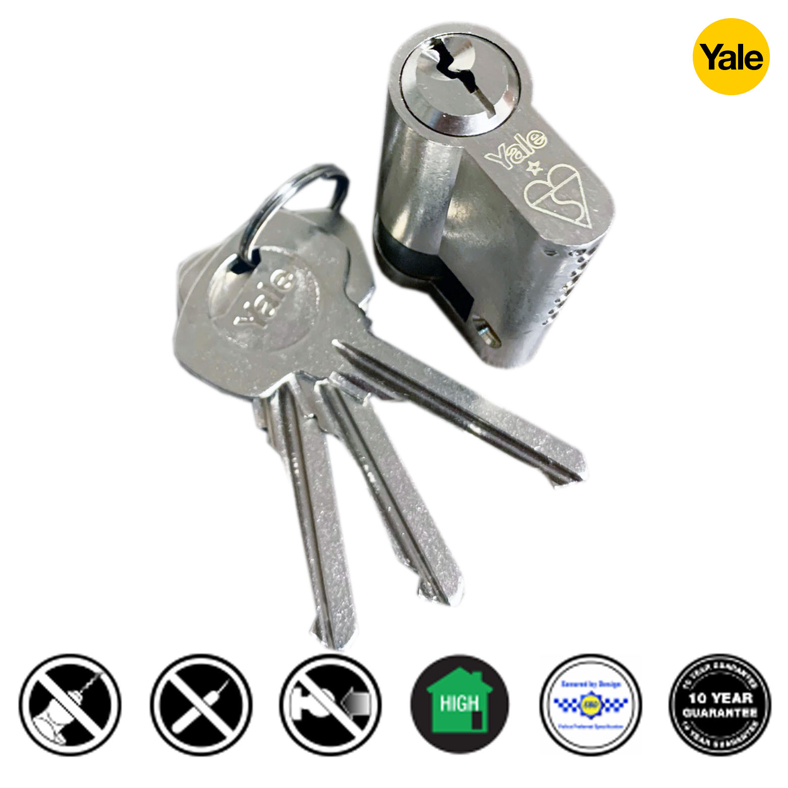 Yale recommend using this 1 star cylinder in conjunction with a Platinum Series 2 star handle to achieve 3 star security for the best level of protection against cylinder manipulation attack.