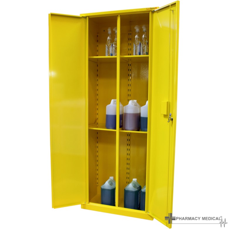 Pharmacy Medicals’ hazardous substance CoSHH cabinets are manufactured from CR4 1.2mm mild steel and finished in a Yellow powder coat. Because of this, they are strong, durable, and easy to wipe clean. Furthermore, the cabinets include applied mandatory BS5378 warning labels.