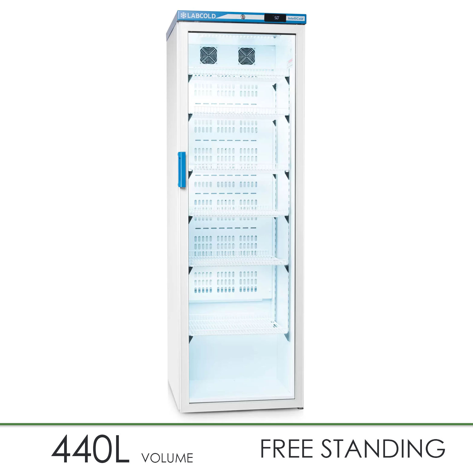 A professional 440 litre pharmacy refrigerator powered by our unique IntelliCold® touch screen controller, designed from the ground up for the safe storage of cold chain medicines as advised by Public Health England in Protocol for Ordering, Storing and Handling Vaccines.